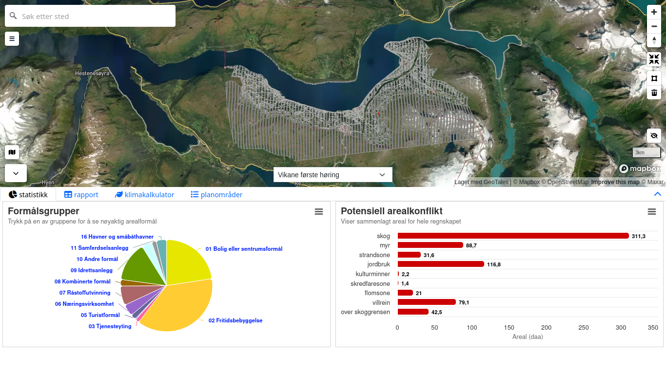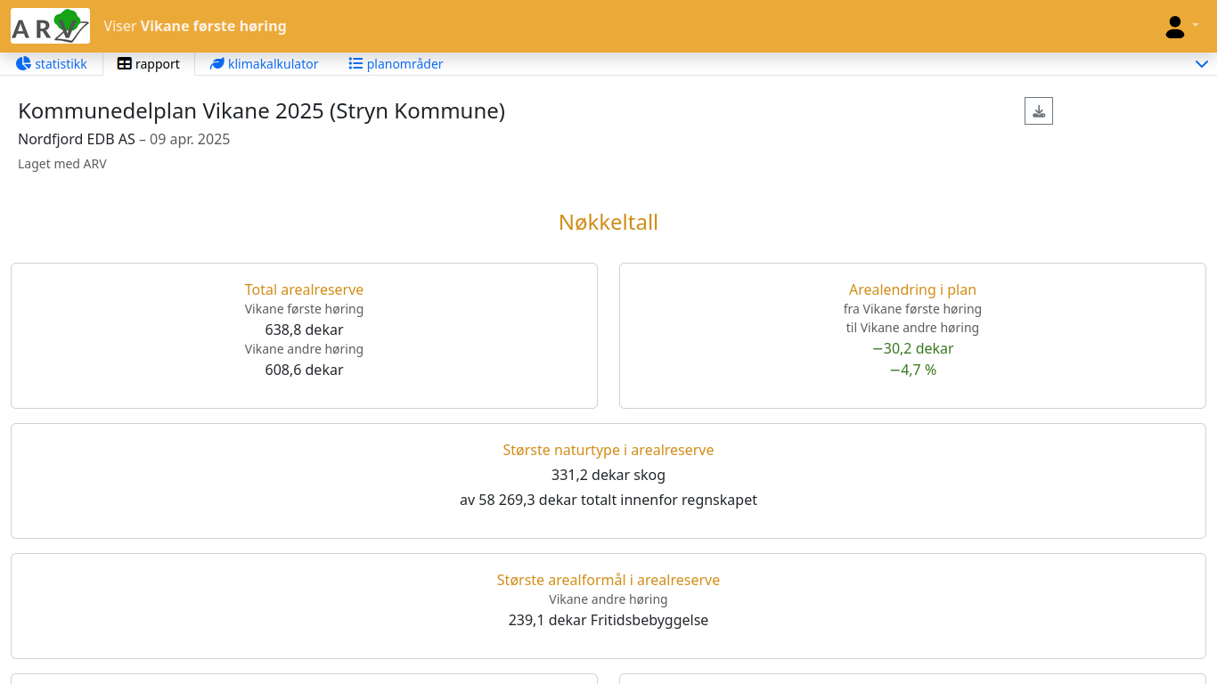 - Automatisk genererte arealregnskapsrapporter klare til bruk i beslutningsprosesser.